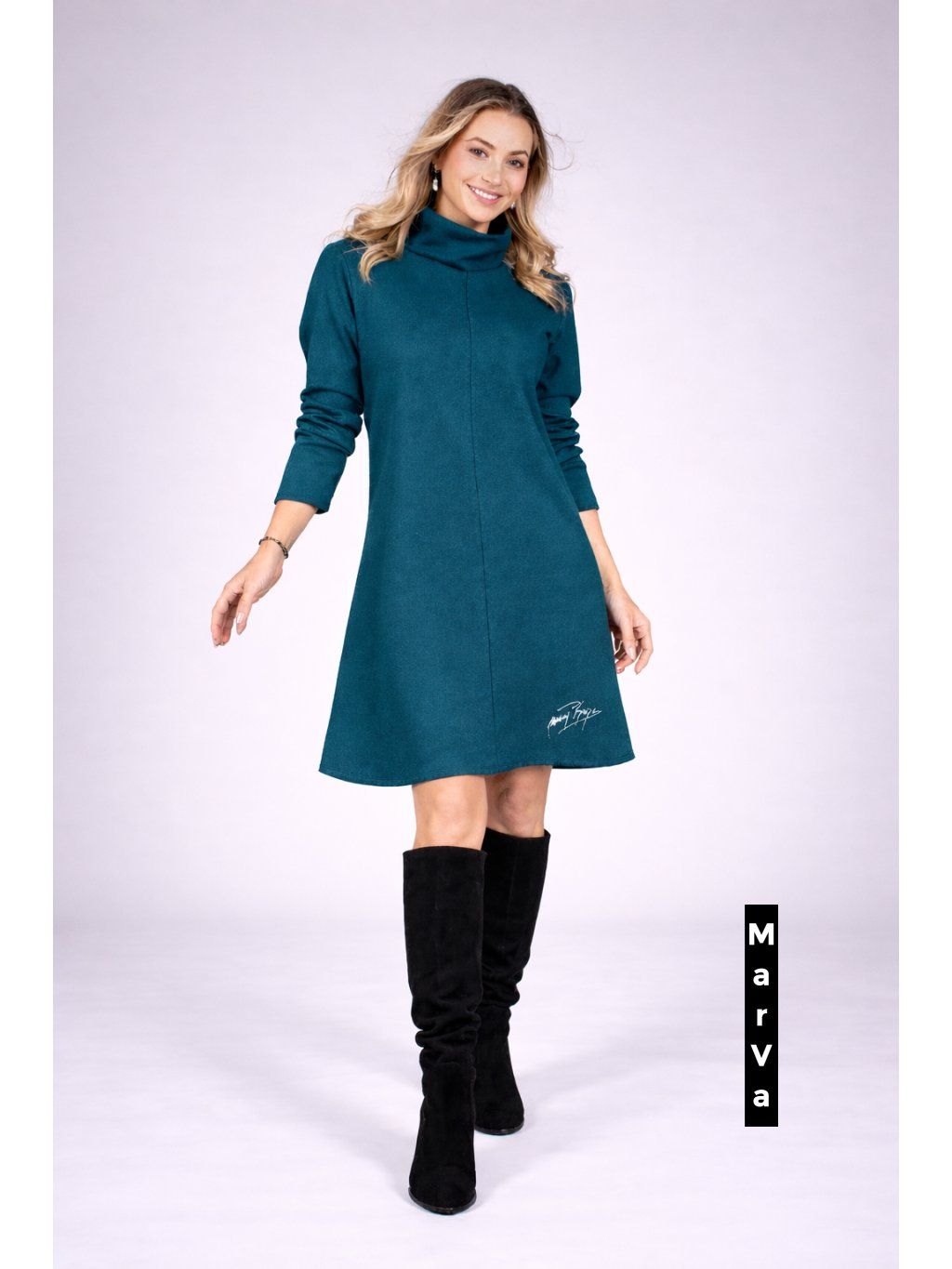 Tato elegantní a zároveň hravá dámská tunika je dokonalým příkladem autorské módy návrhářky Marcely Vymyslické. Vyrobeno z hebkého bio úpletu s příměsí elastanu, přináší pohodlí, šetrnost k přírodě a perfektní přizpůsobivost.