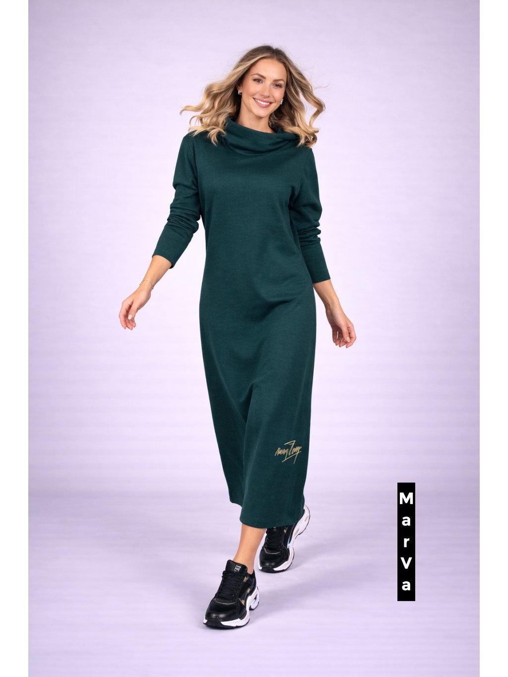 Objevte jedinečnou kombinaci eleganci a pohodlí s těmito autorskými šaty od renomované návrhářky Marcely Vymyslické. Vyrobené z kvalitního bio úpletu, který je šetrný k pokožce i přírodě, tyto šaty nabízí styl, komfort a udržitelnost v jednom. Dostupné v několika atraktivních barvách s metalickými pruhy, které dodávají každému modelu moderní a originální nádech.