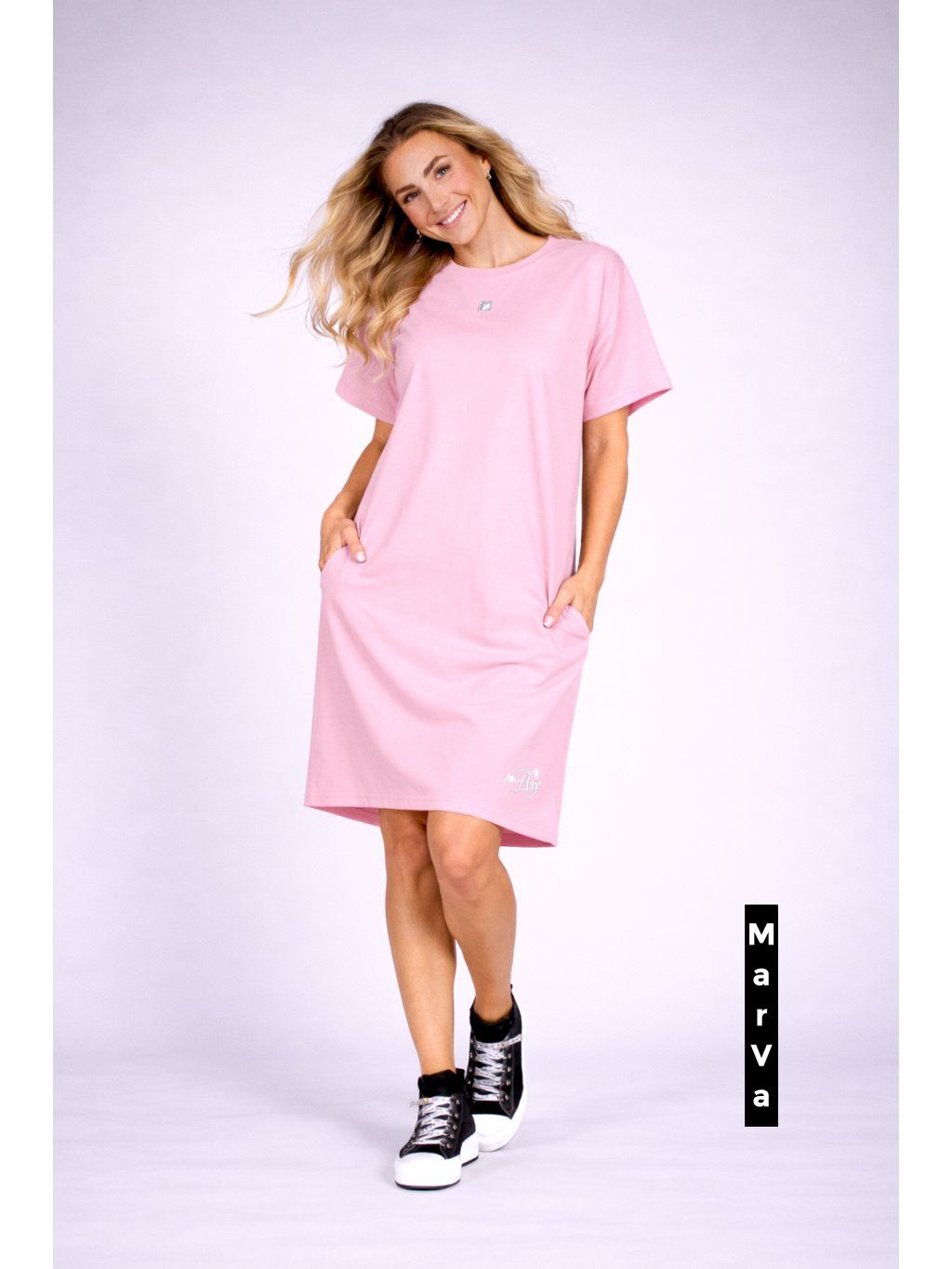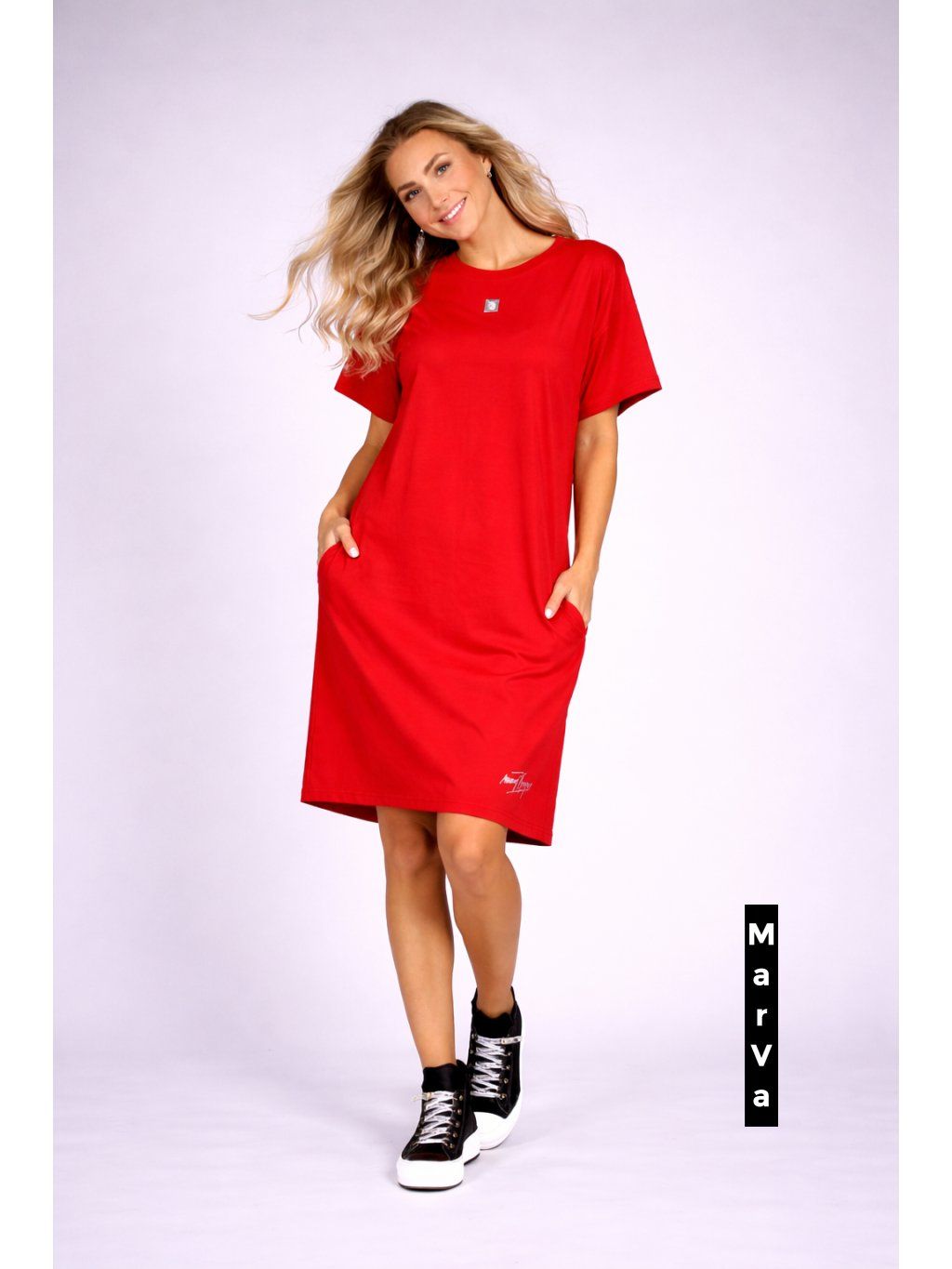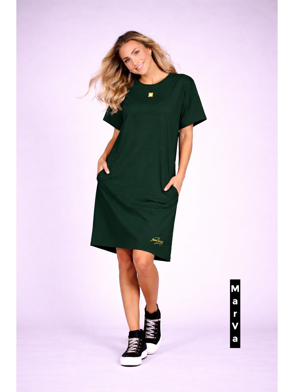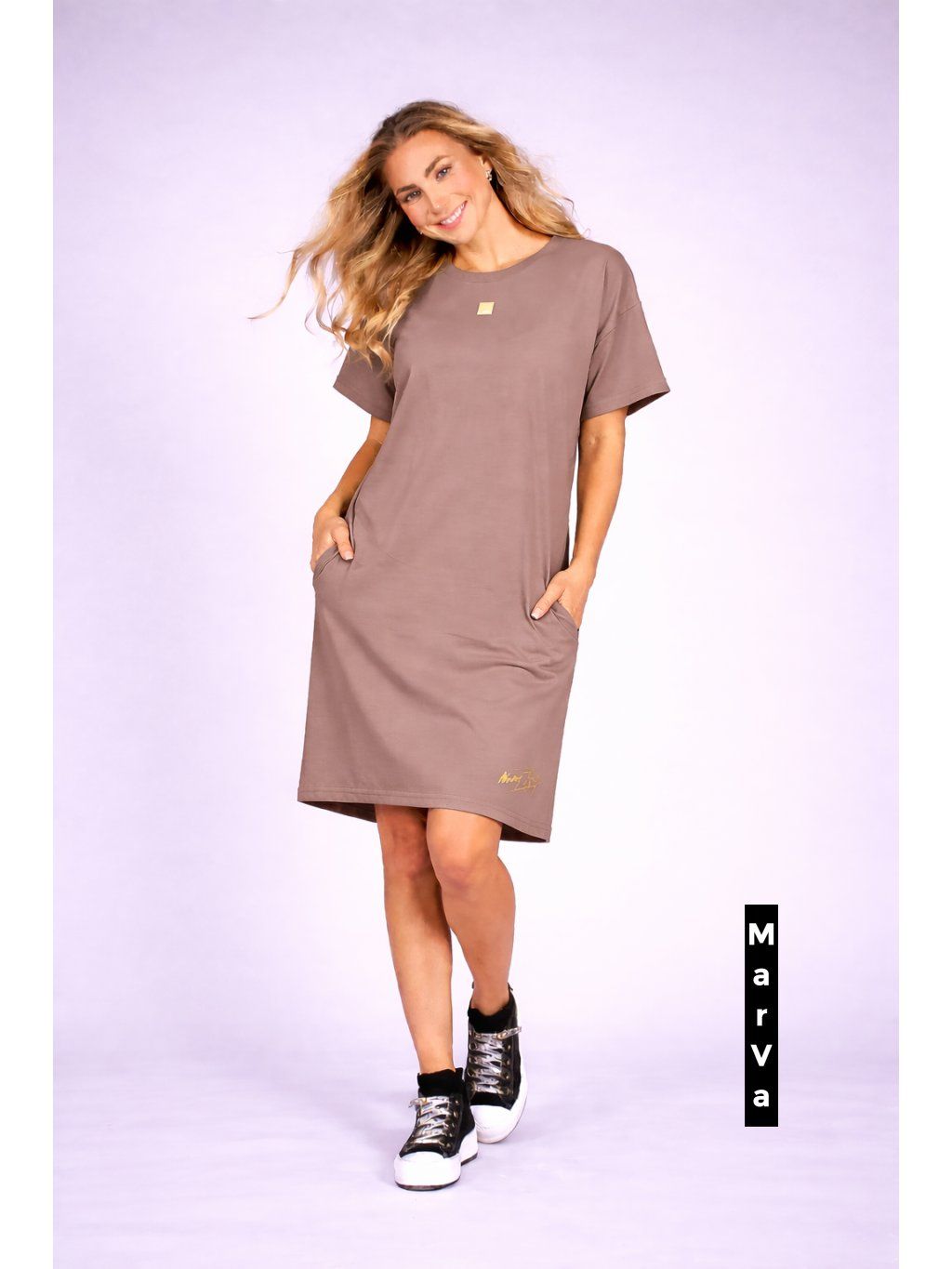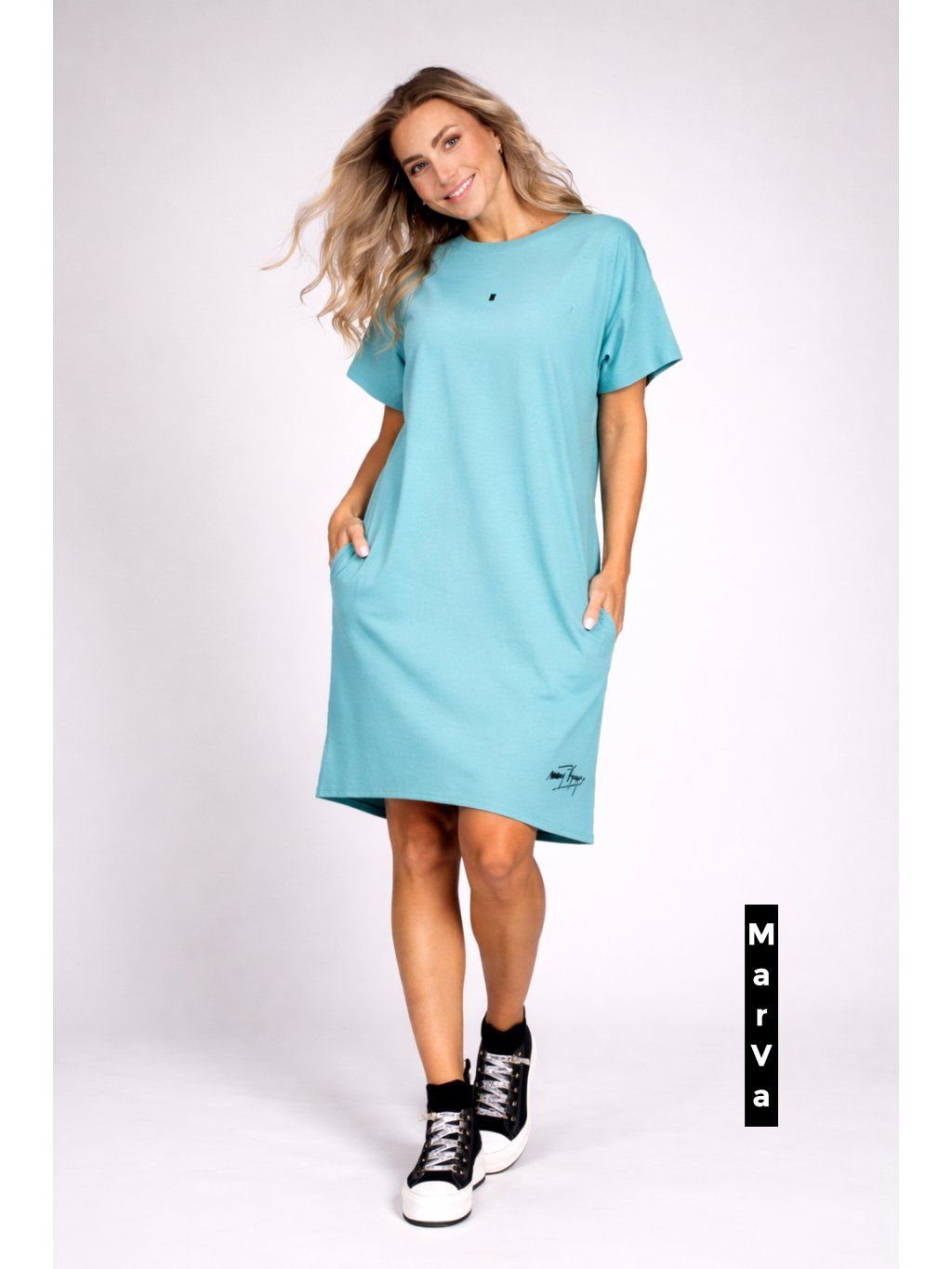 Dámské tričkové šaty z hebkého bio úpletu – autorská móda Marcely Vymyslické