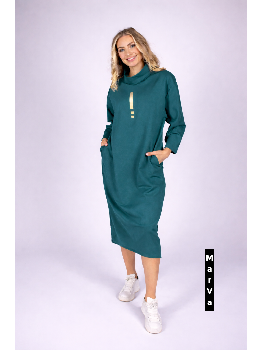 Jejich volný střih a dlouhé rukávy zajišťují maximální pohodlí, zatímco praktické kapsy a podpis návrháře ve spodní části přidávají šatům na originalitě a charakteru. Jsou ideální pro městský životní styl, ale také pro chvíle, kdy chcete být stylová a cítit se skvěle. Tento model je opravdu zajímavý typ šatů, který se snadno stane oblíbeným kouskem vašeho šatníku.